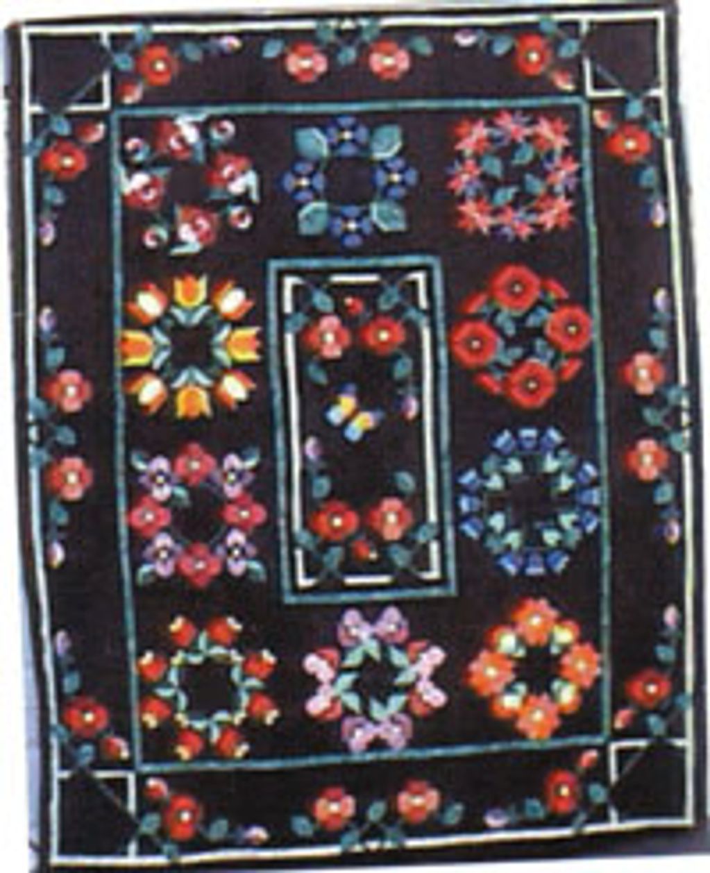 These blocks were from the PieceMakers Calendar. Machine embroidery in addition to the applique. It was hung at the Houston Show that year.