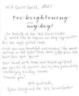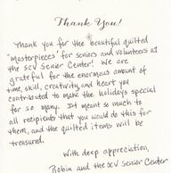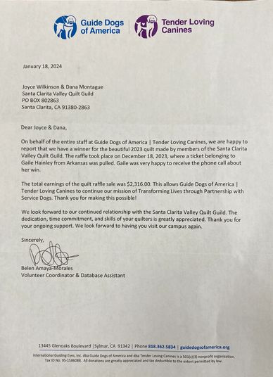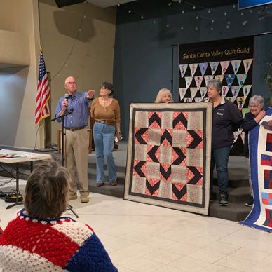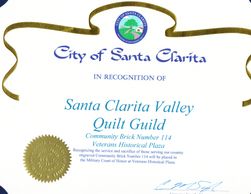 Our Veterans who qualified for a home in the City of Santa Clarita received a Quilt when they moved into their new home. Our members from the SCVQG made each of these Quilts to honor each Veteran and their family. The City of Santa Clarita gave the guild a grant to help support our efforts to make these beautiful Quilts