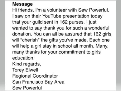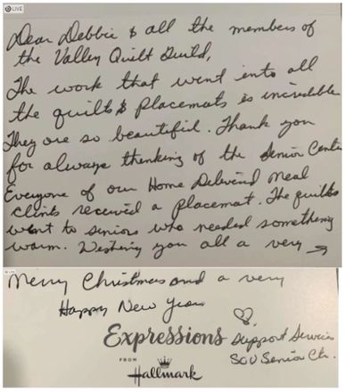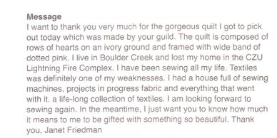 Pamela White from Cal Vet VA came to thank our guild members for the wonderful quilts that were donated to our Vets. Pamela told us our Vets appreciate our efforts in creating each of these handmade items.