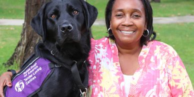 Irene and her dog " Lennon", Irene is a Navy Vet who served during the Gulf War. Lennon is a service dog that helps Irene with her PTSD and anxiety.